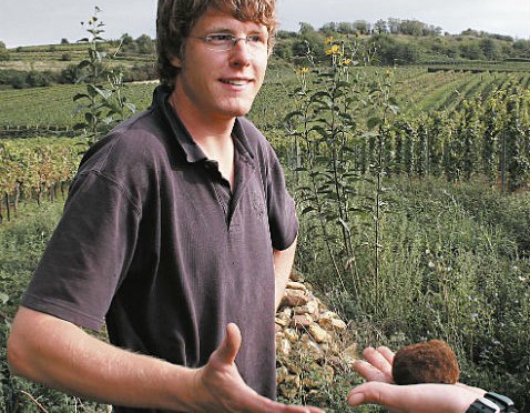 Ewiger Jungwinzer: Sven Leiner. Aber was ist das Zeug rechts vorne im Bild? Foto: Weingut